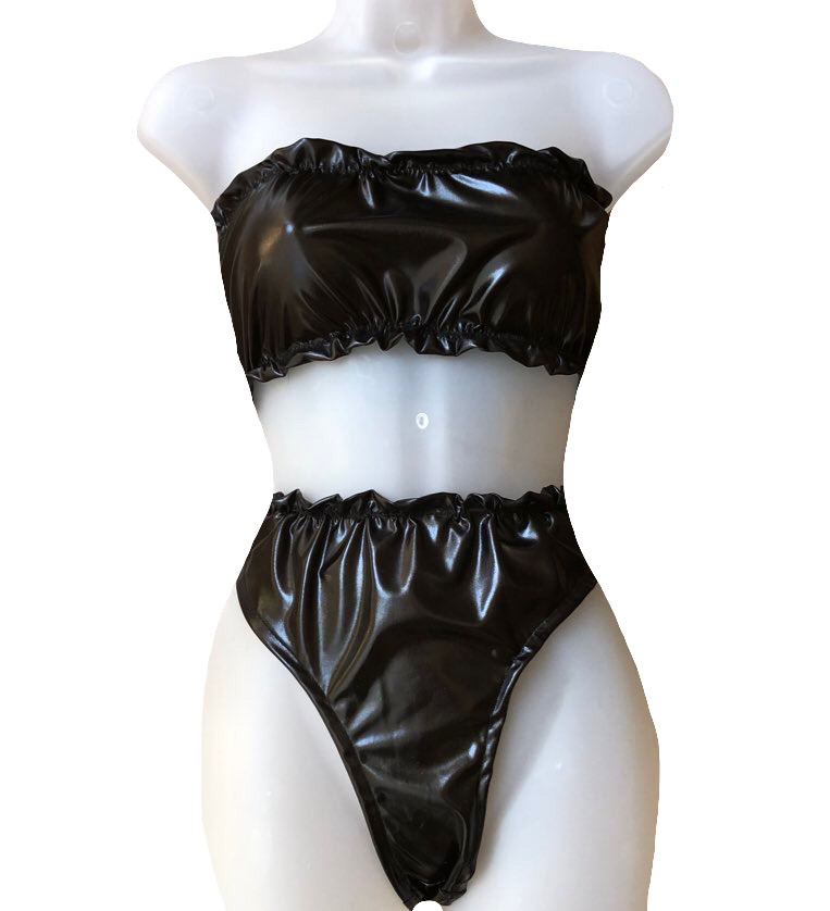 Made with stretch faux leather as well as an elastic band at the top and bottom.