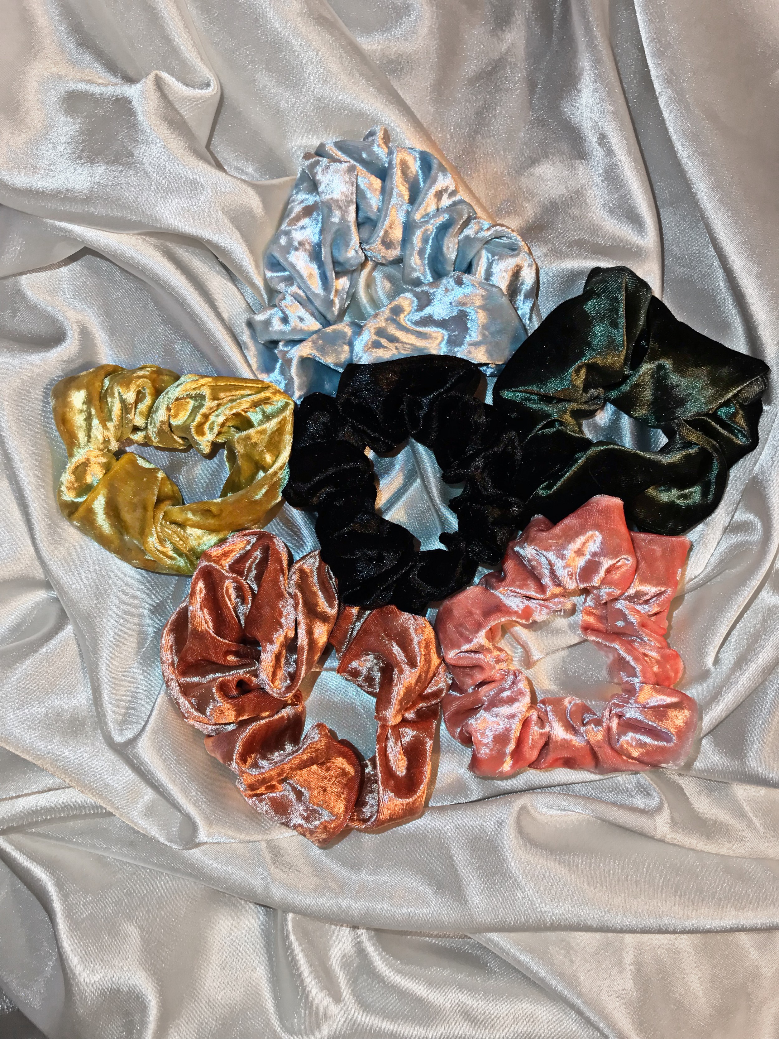 This listing is for a 4 PC of surprise Scrunchies! Can be any of the ones listed but not limited to those. A variety of velvets, laces, satins, & more! *May include but not limited to the scrunchies shown in photos*
