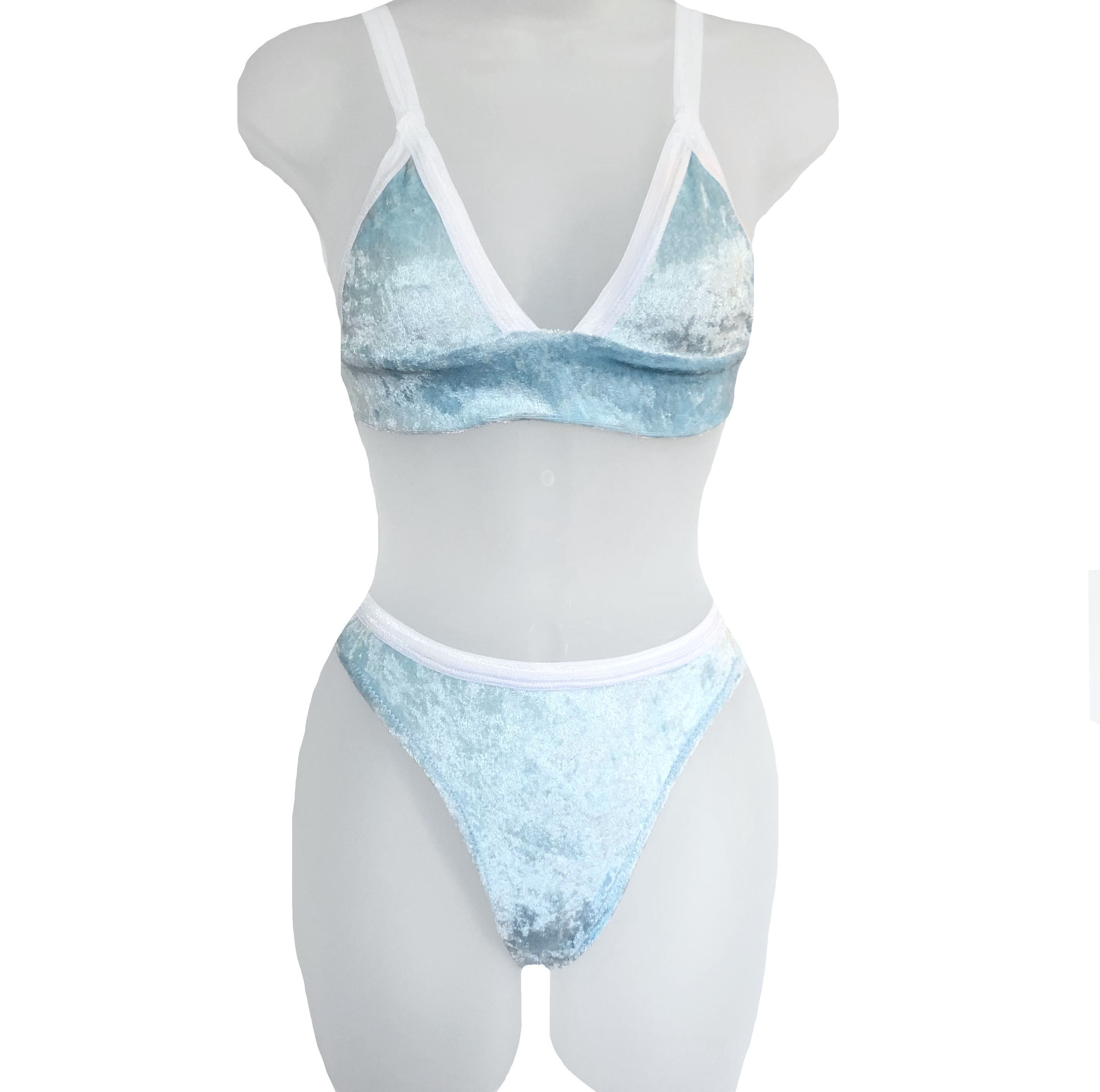 Made out of a soft and stretchy panne velvet. Very comfy and such a cute fabric!