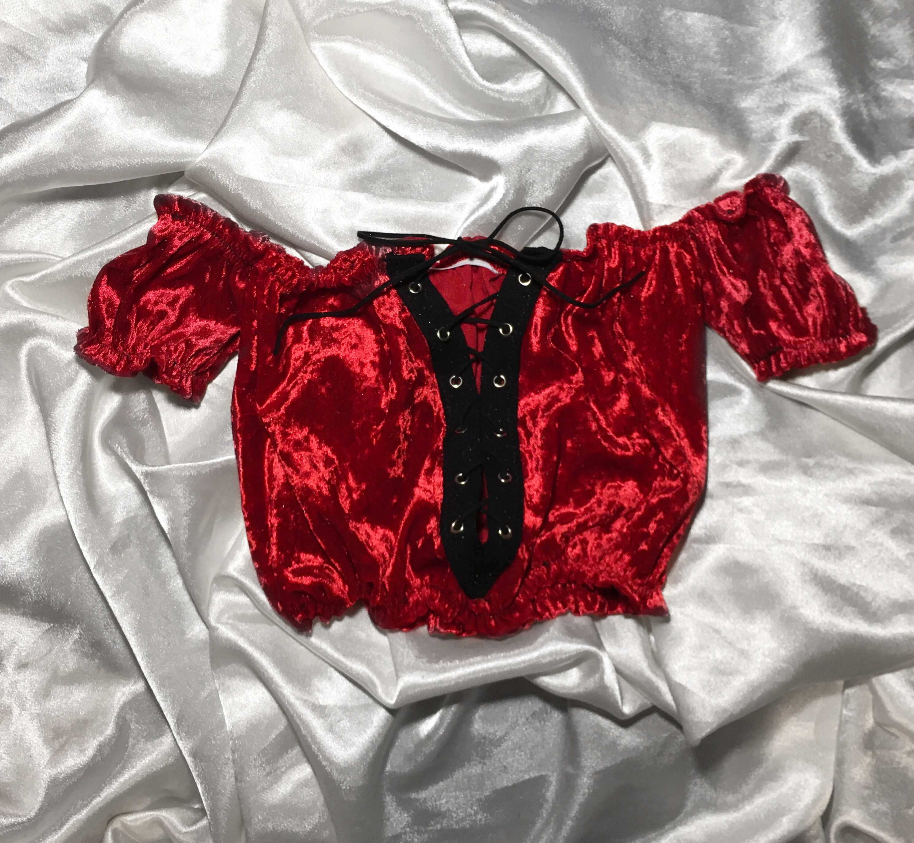 This crop top is made out of a soft & stretchy panne velvet. Designed with a scrunch style paired with the lace up detail to adjust the look you want!