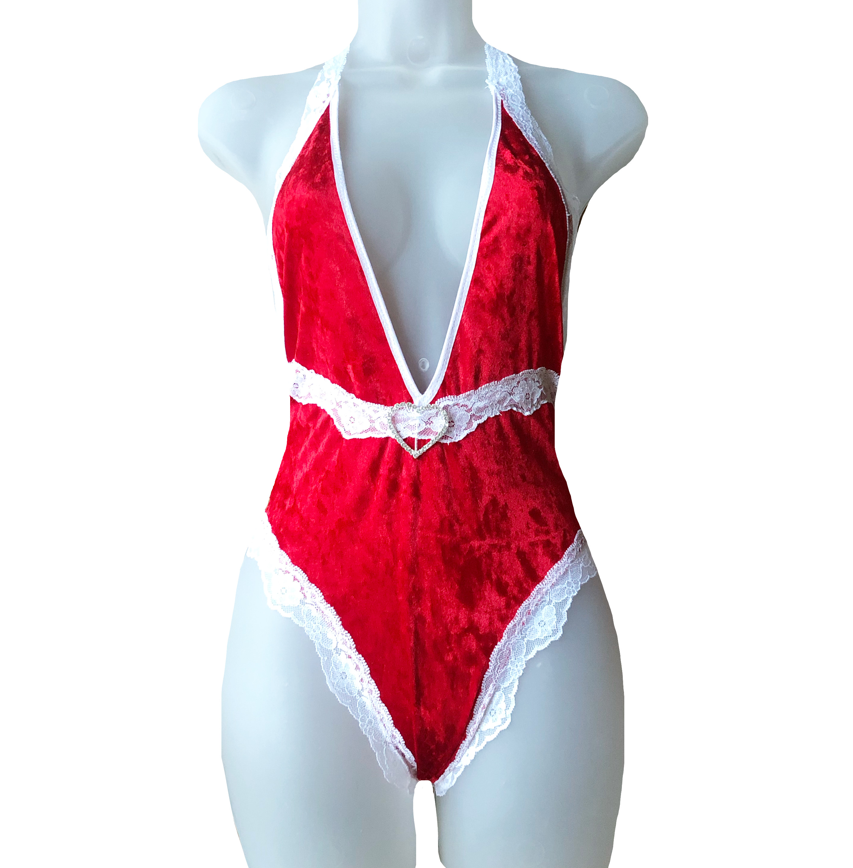 Made out of a stretch panne velvet. Comfortable as sleep or lounge wear. Could also be paired with high waisted shorts & a cardigan as an outfit! Heart is a charm that is hand sewn to the waist. Cheeky back (similar to front). Hand wash only; lay flat to dry.