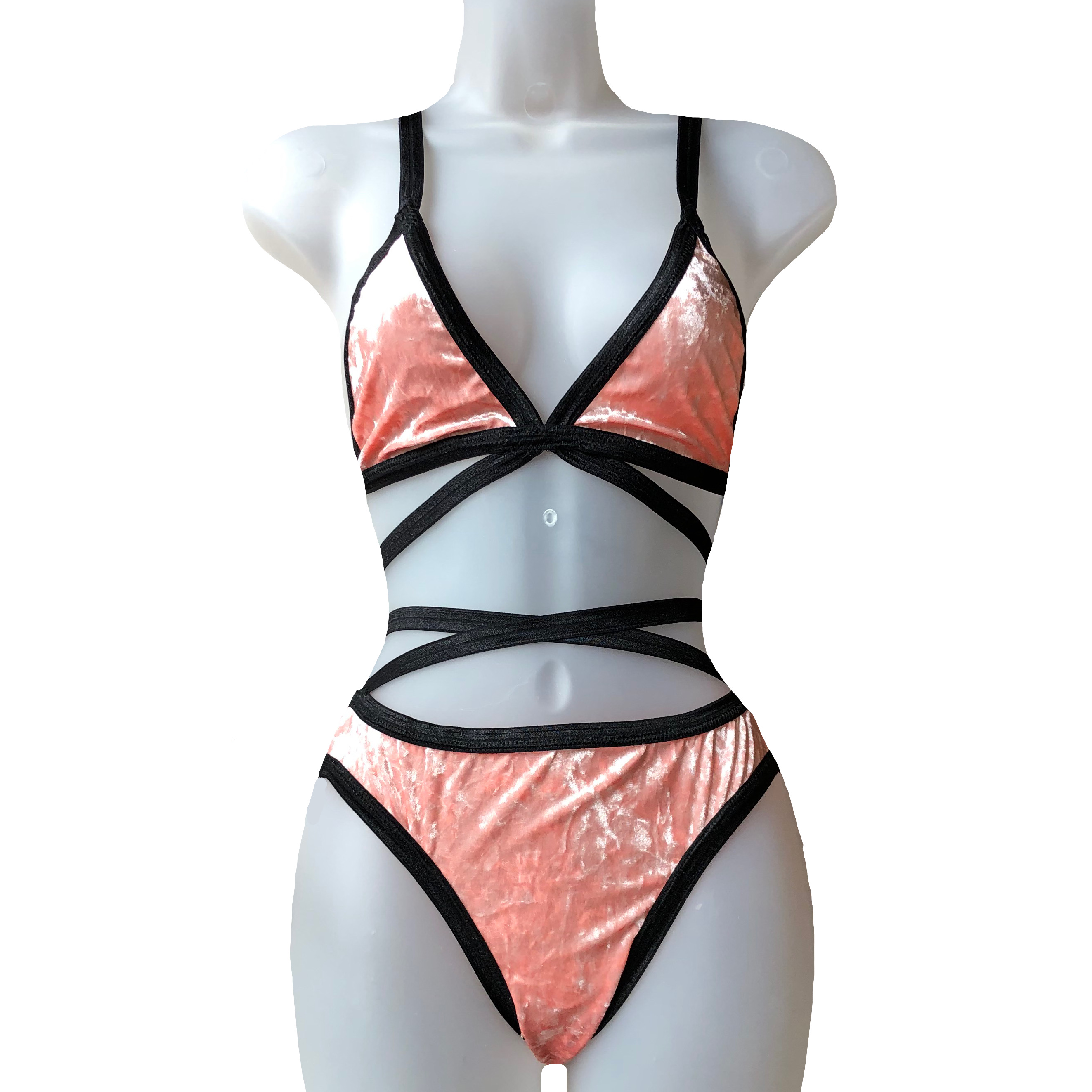Soft and stretchy set made out of a pink panne velvet. Lounge around the house in this set or wear it any day!