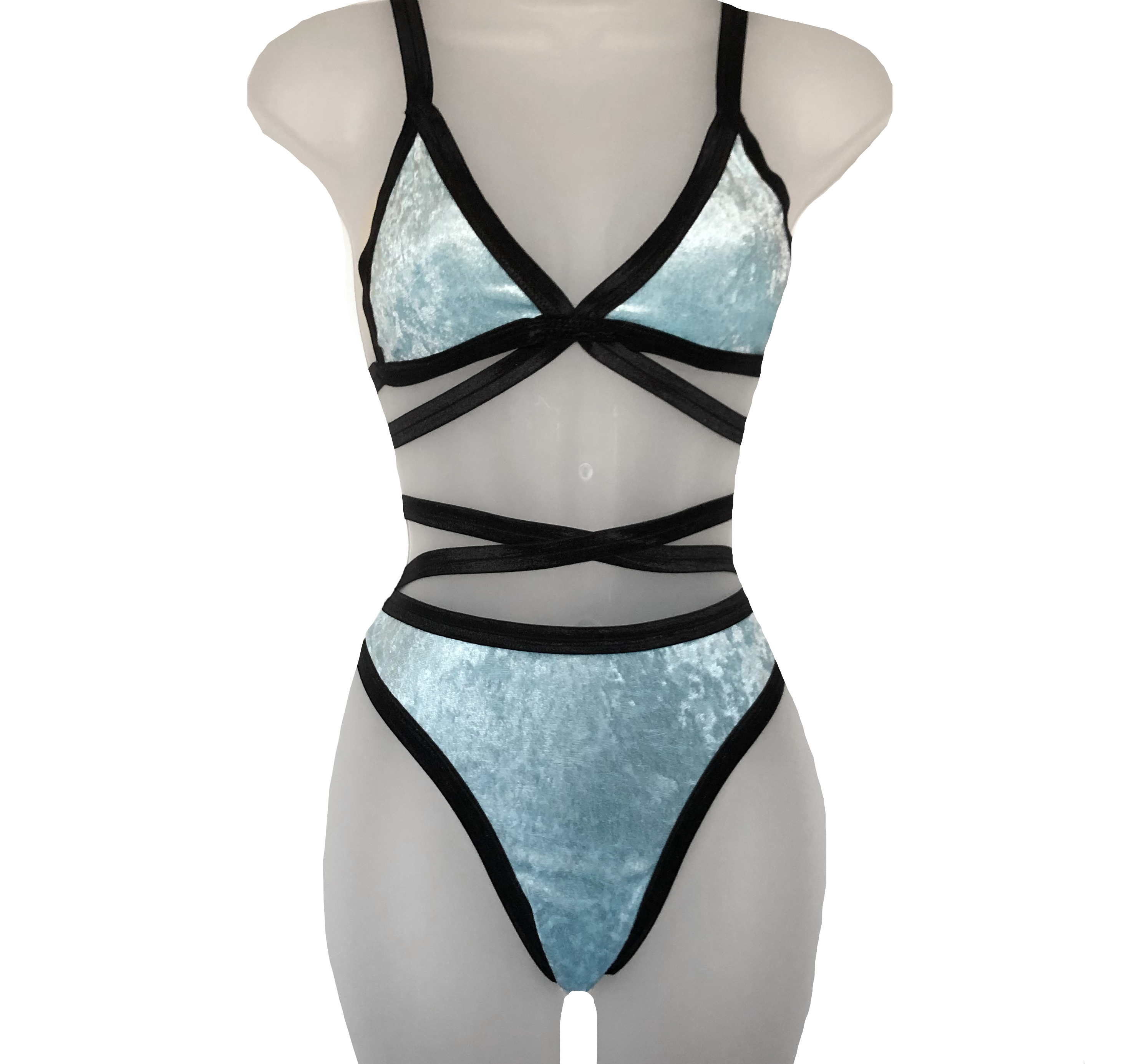 Soft and stretchy set made out of a baby blue panne velvet. Lounge around the house in this set or wear it any day!