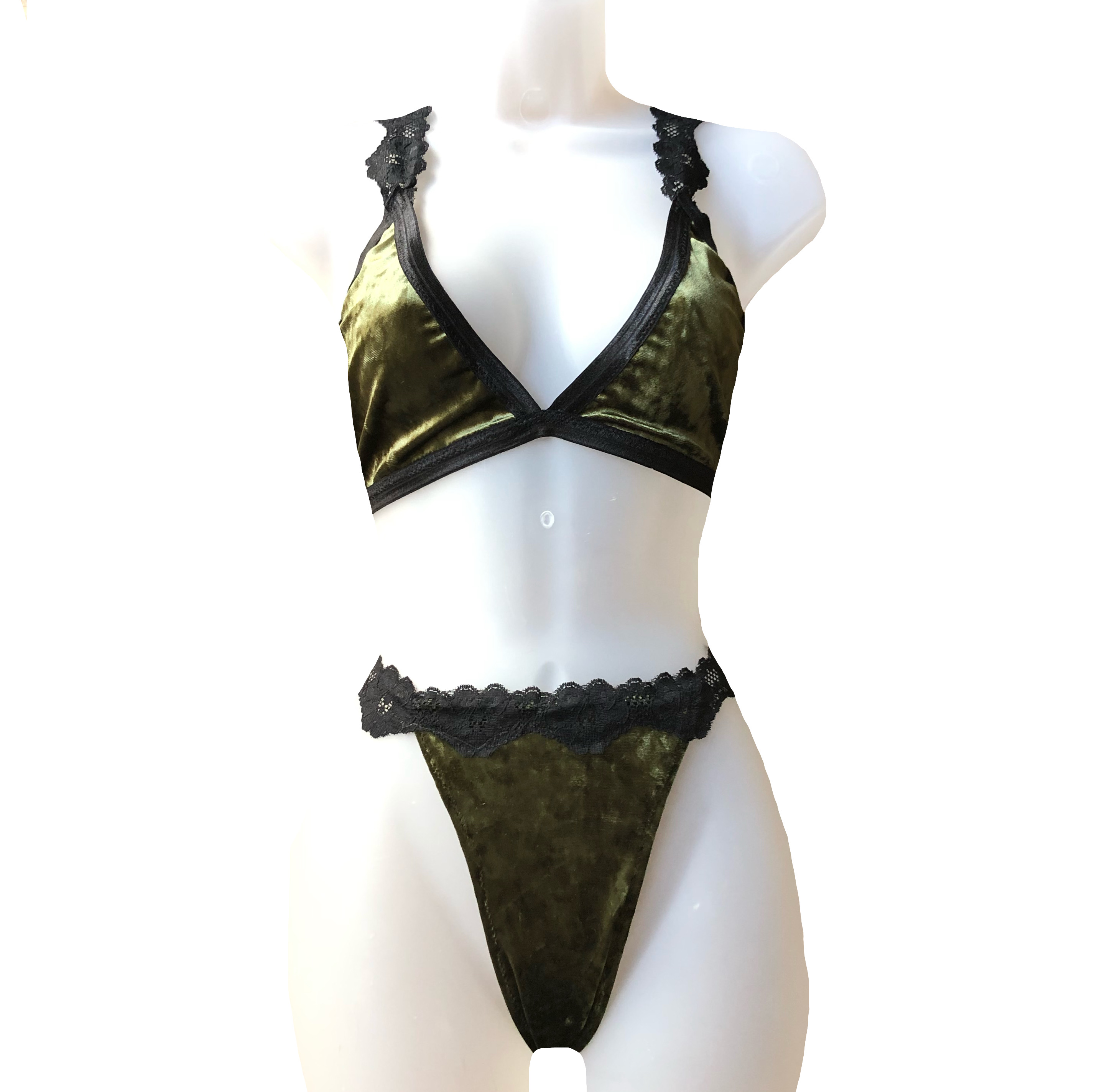 Made in the softest panne velvet, lined in a floral lace trim. Cheeky Panty.